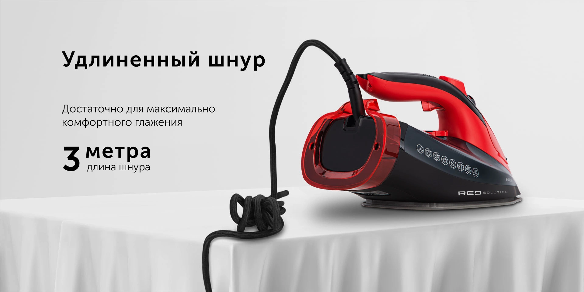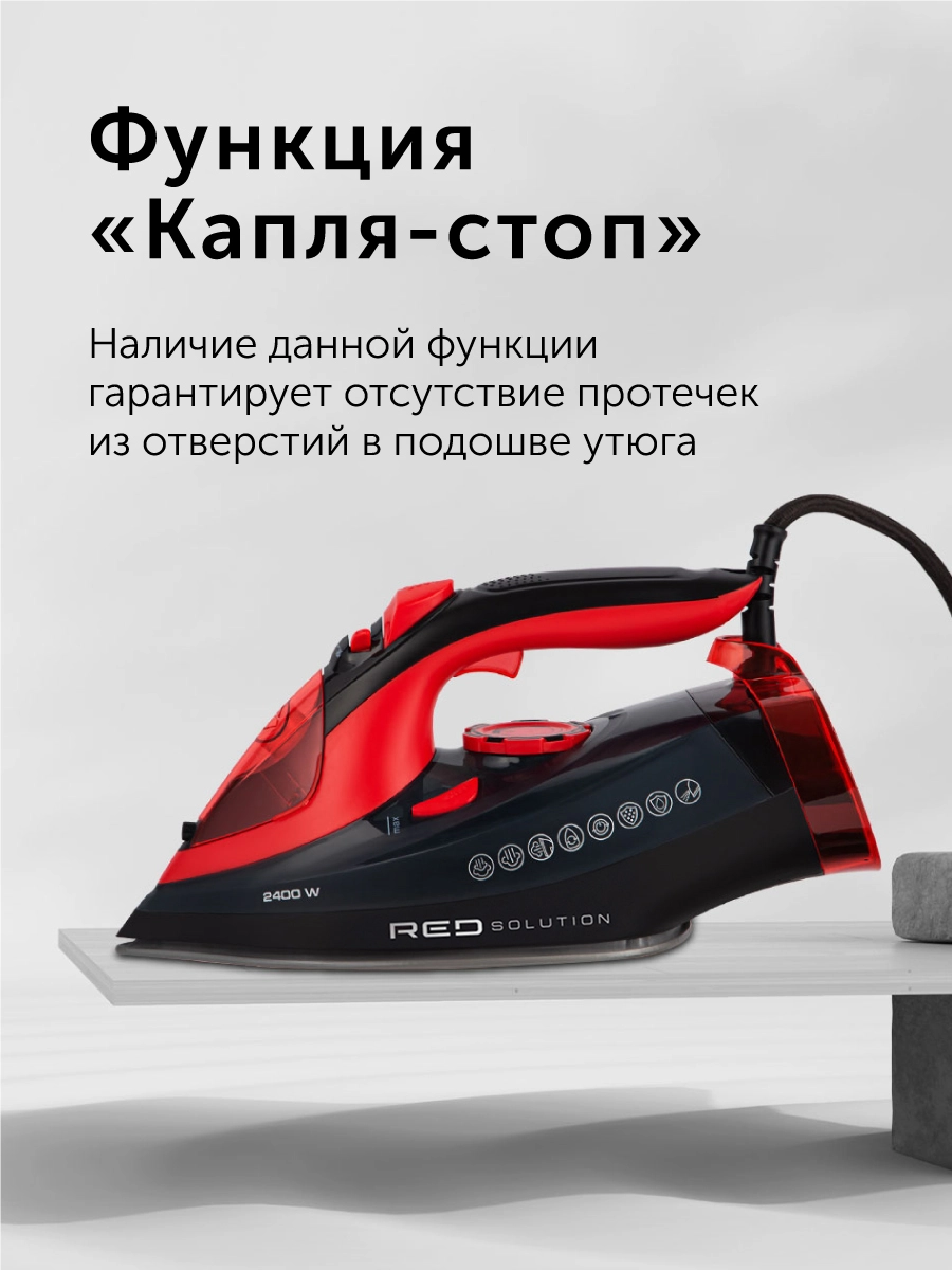 Мощный универсальный утюг RED SOLUTION RI-С283 позволит быстро и качественно разгладить складки на вещах из разных типов тканей.