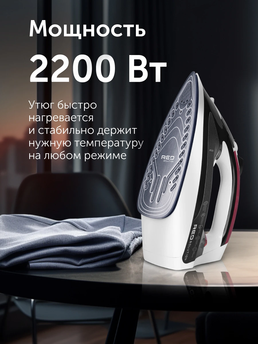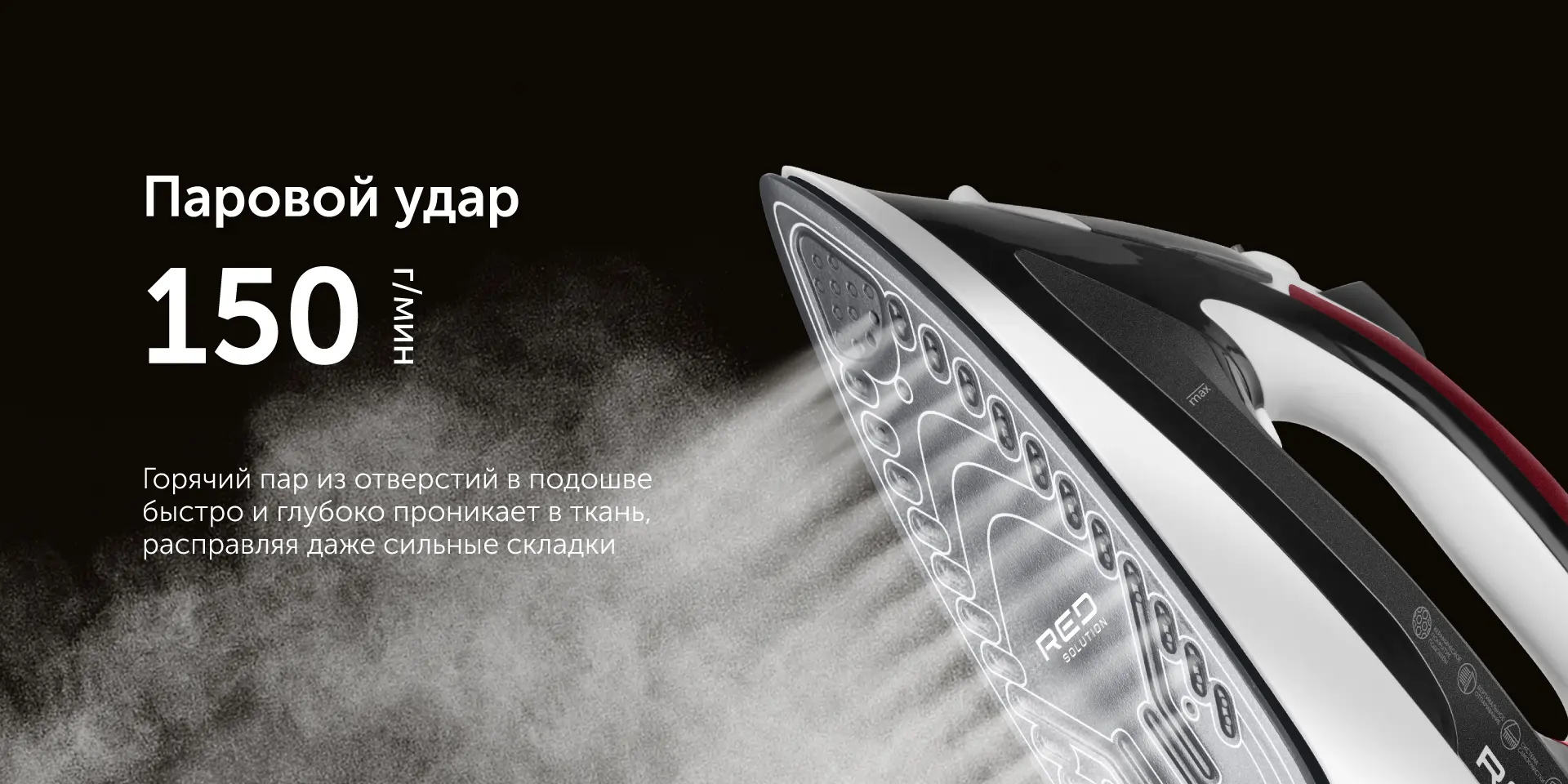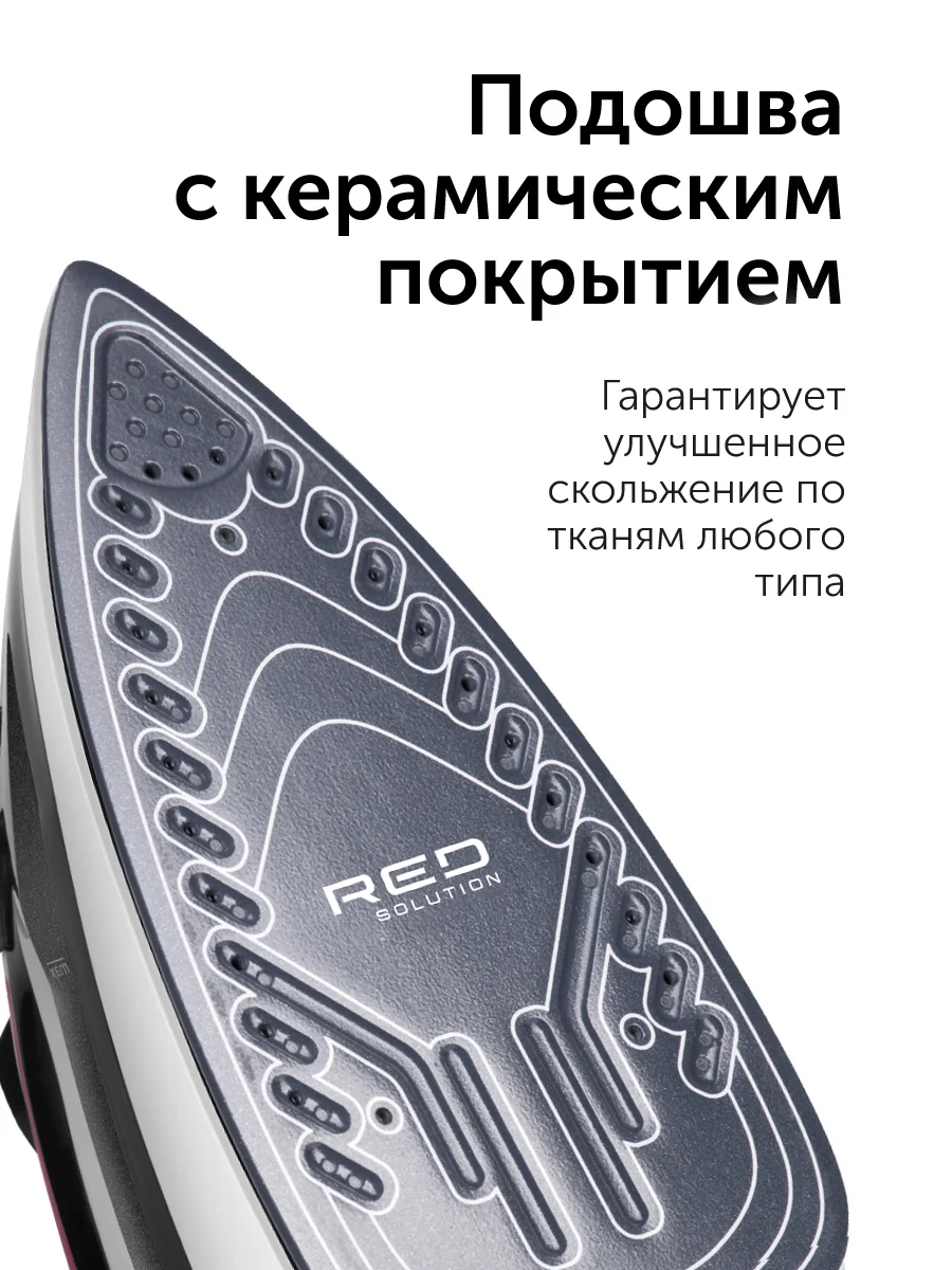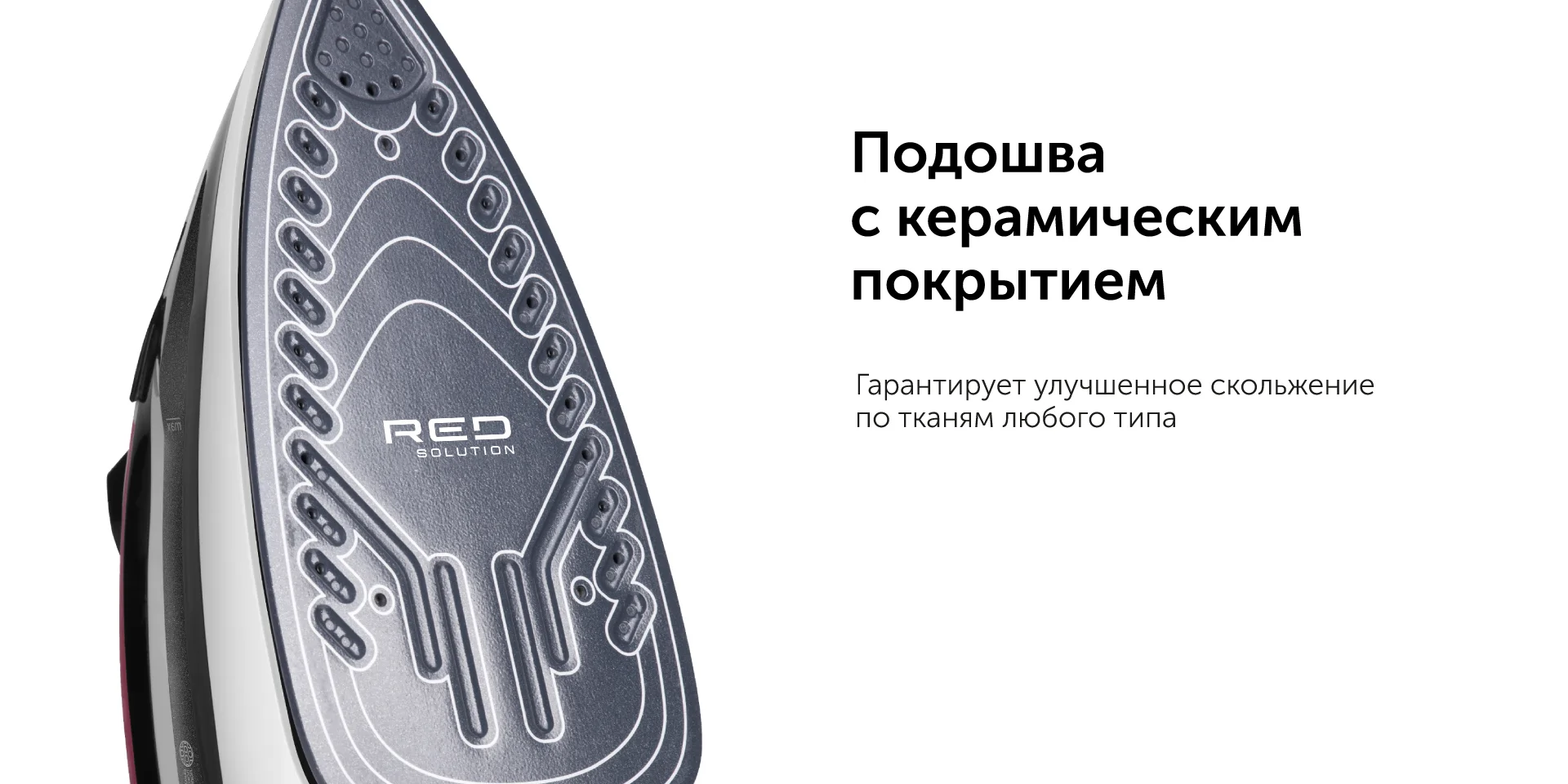 RED SOLUTION I281 — стильный и мощный утюг, с которым глажка из рутины станет приятным и быстрым занятием. Мощность 2200 Вт и функция «Паровой удар» помогут справится с заломами любой сложности даже на самой плотной ткани. Подошва с керамическим покрытием позаботится о сохранности деликатных тканей. Модель защищена от накипи: специальная кассета смягчает воду, препятствуя образованию налета.