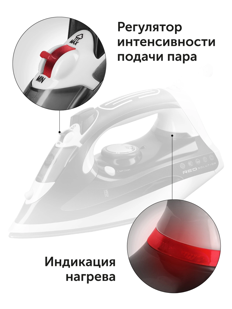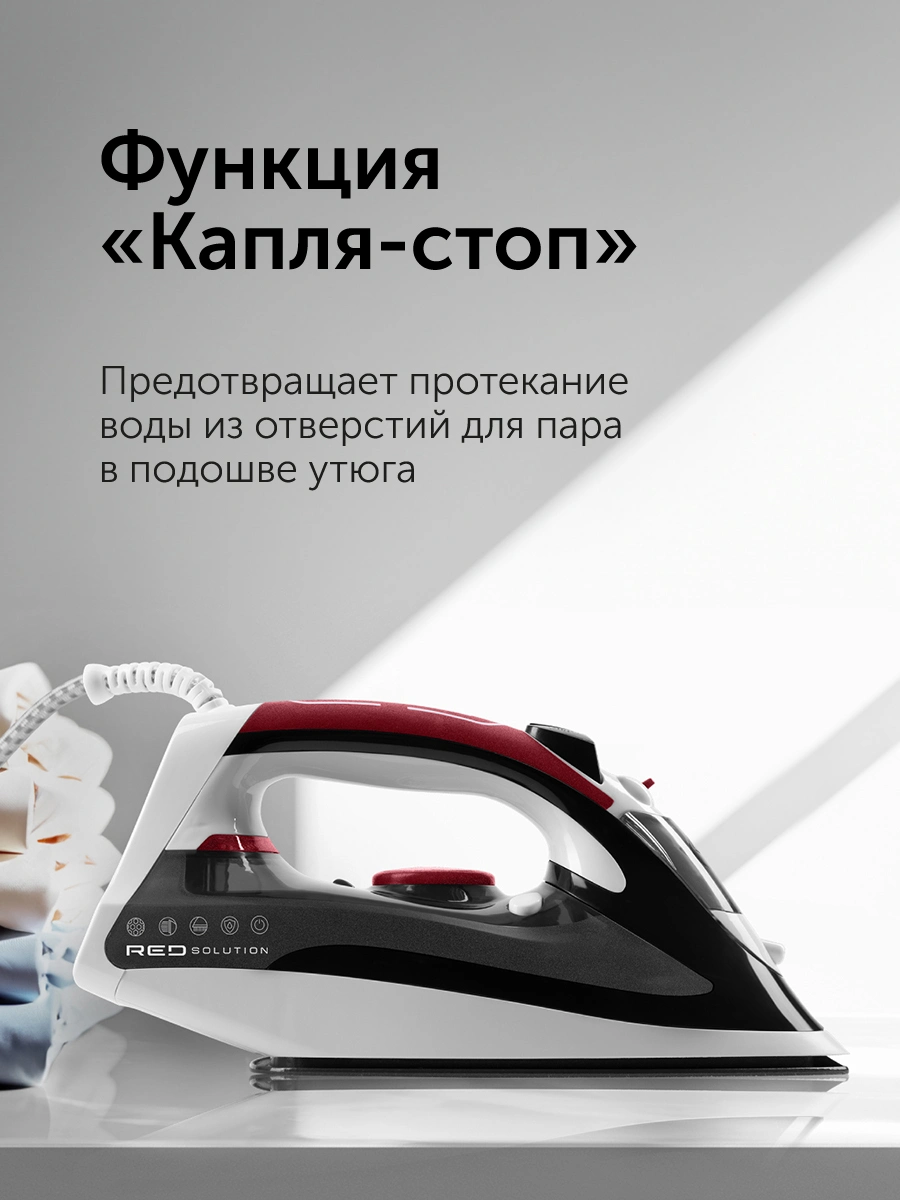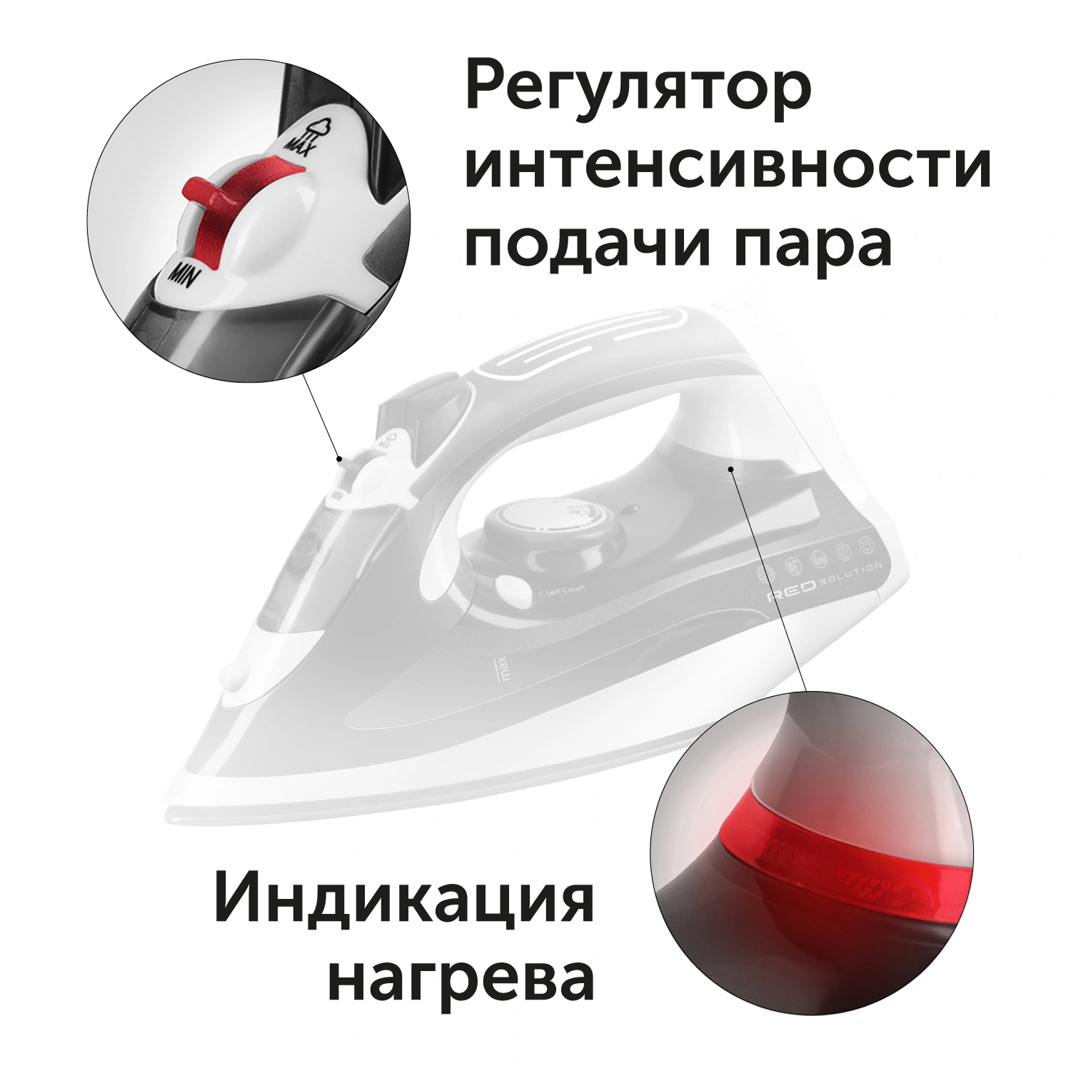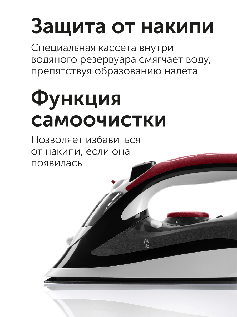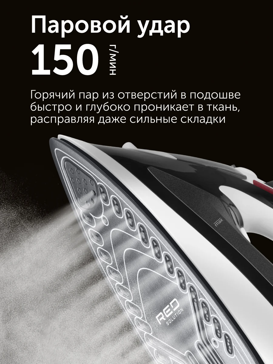 RED SOLUTION I281 — стильный и мощный утюг, с которым глажка из рутины станет приятным и быстрым занятием. Мощность 2200 Вт и функция «Паровой удар» помогут справится с заломами любой сложности даже на самой плотной ткани. Подошва с керамическим покрытием позаботится о сохранности деликатных тканей. Модель защищена от накипи: специальная кассета смягчает воду, препятствуя образованию налета.