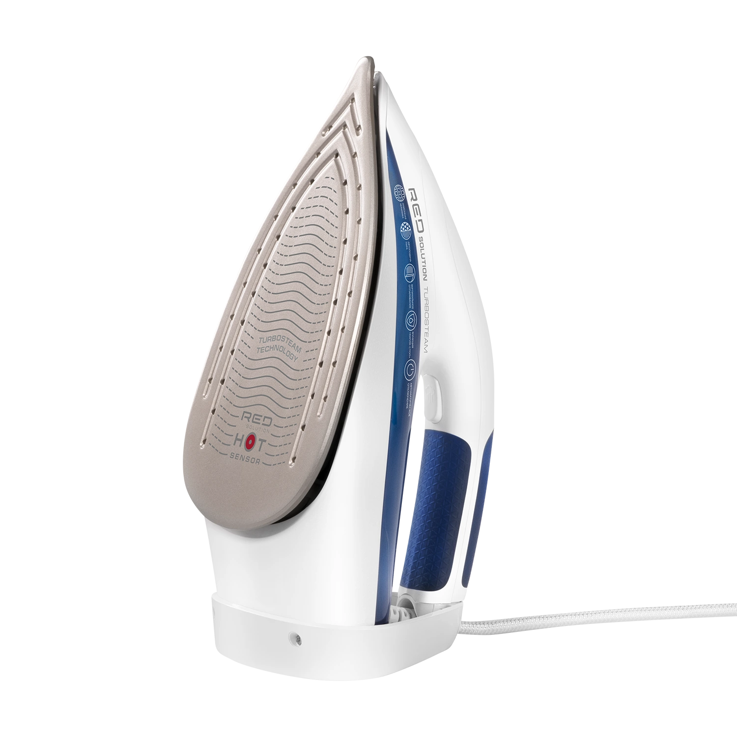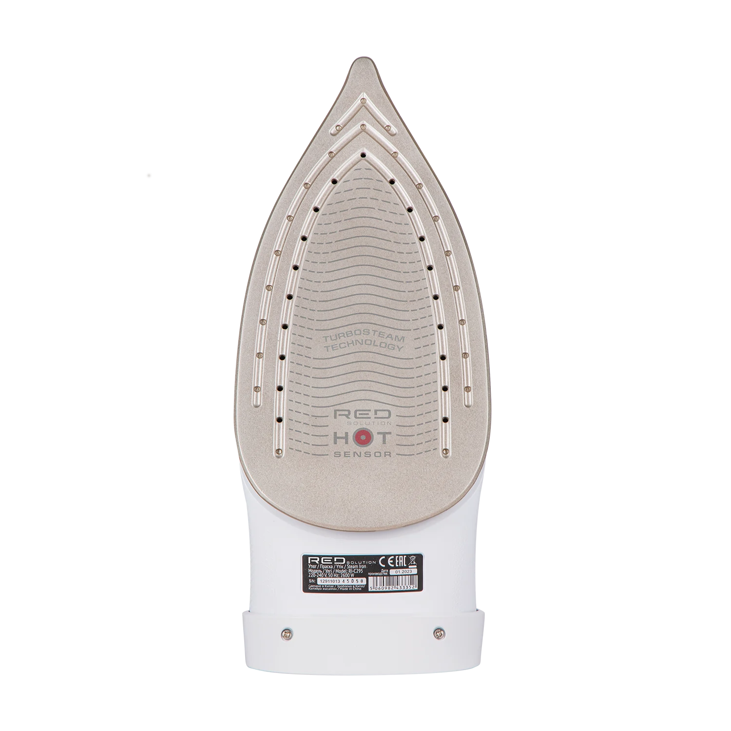 Анионная керамическая подошва убирает статику с ткани, а линейные отверстия по краю подошвы производят постоянную подачу пара, что обеспечивает идеальный результат глажки. Центральная горячая зона без отверстий отлично скользит и не прилипает даже при самых высоких температурах. Среди других преимуществ утюга RED SOLUTION RI-C295: