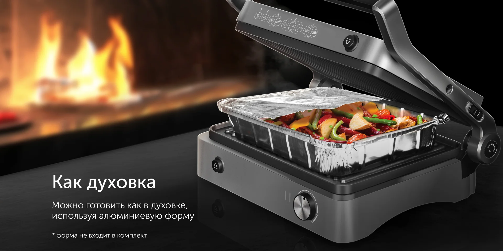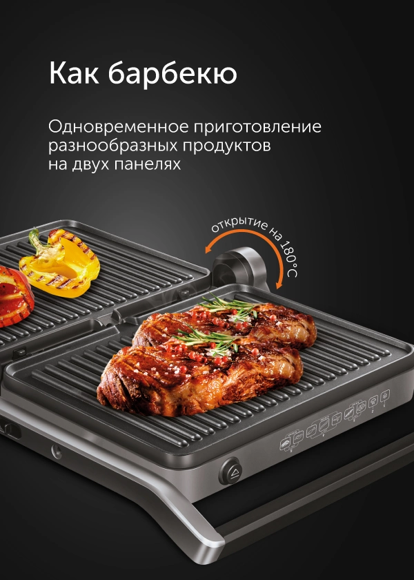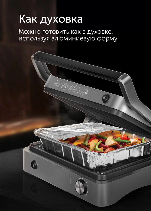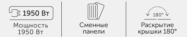 Антипригарное покрытие панелей позволяет готовить без капли масла, что дает возможность перейти на правильное питание и не отказываться от жареной пищи.