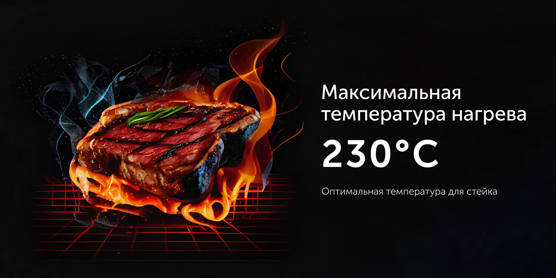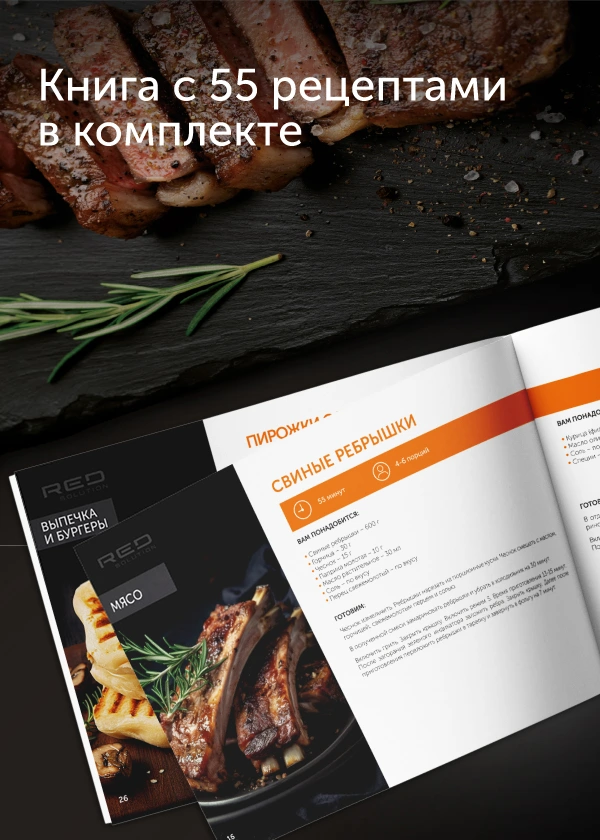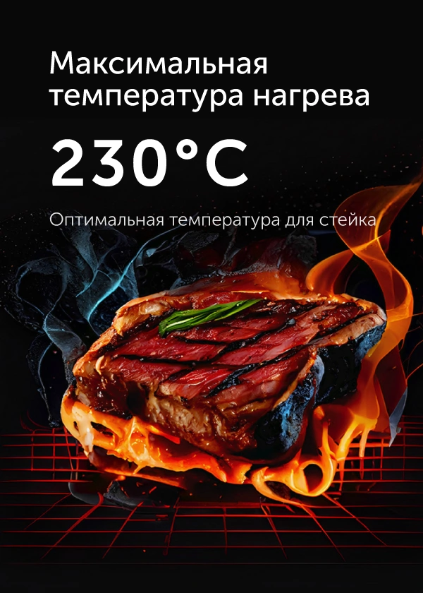Универсальный гриль RED SOLUTION SteakPRO RGM-M814 мощностью 1950 Вт имеет максимальную температуру нагрева 230 °C, благодаря этому продукты быстро и равномерно пропекаются.