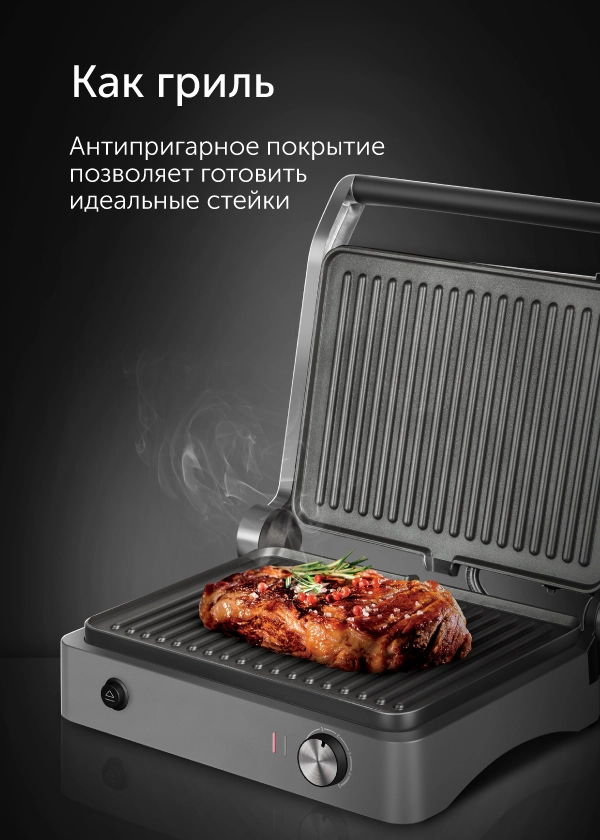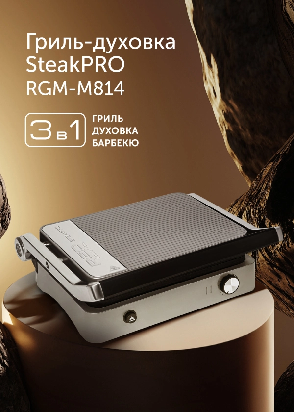 Гриль RED SOLUTION RGM-M814 — универсальное устройство 3 в 1 c механическим управлением, которое объединяет в себе функции: