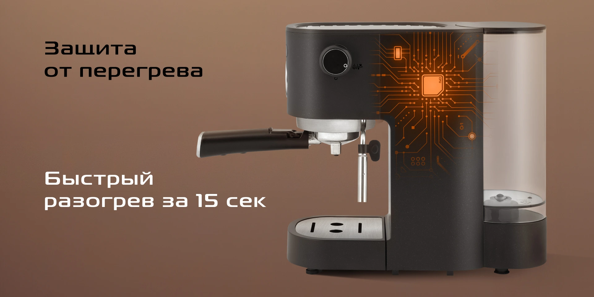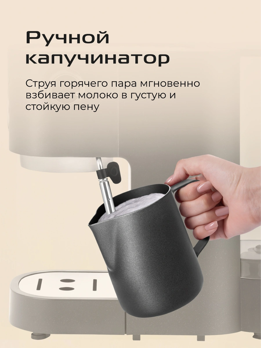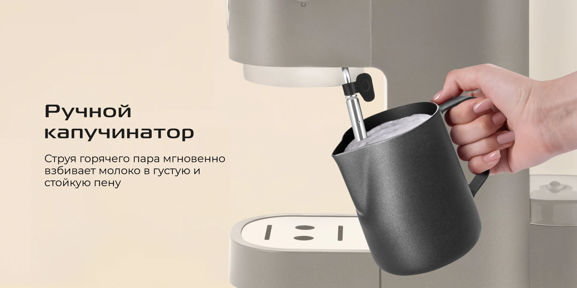 Струя горячего пара мгновенно взбивает молоко в густую и стойкую пену. Ваши любимые кофейно-молочные напитки не будут ничем уступать качеству лучших кофеен.