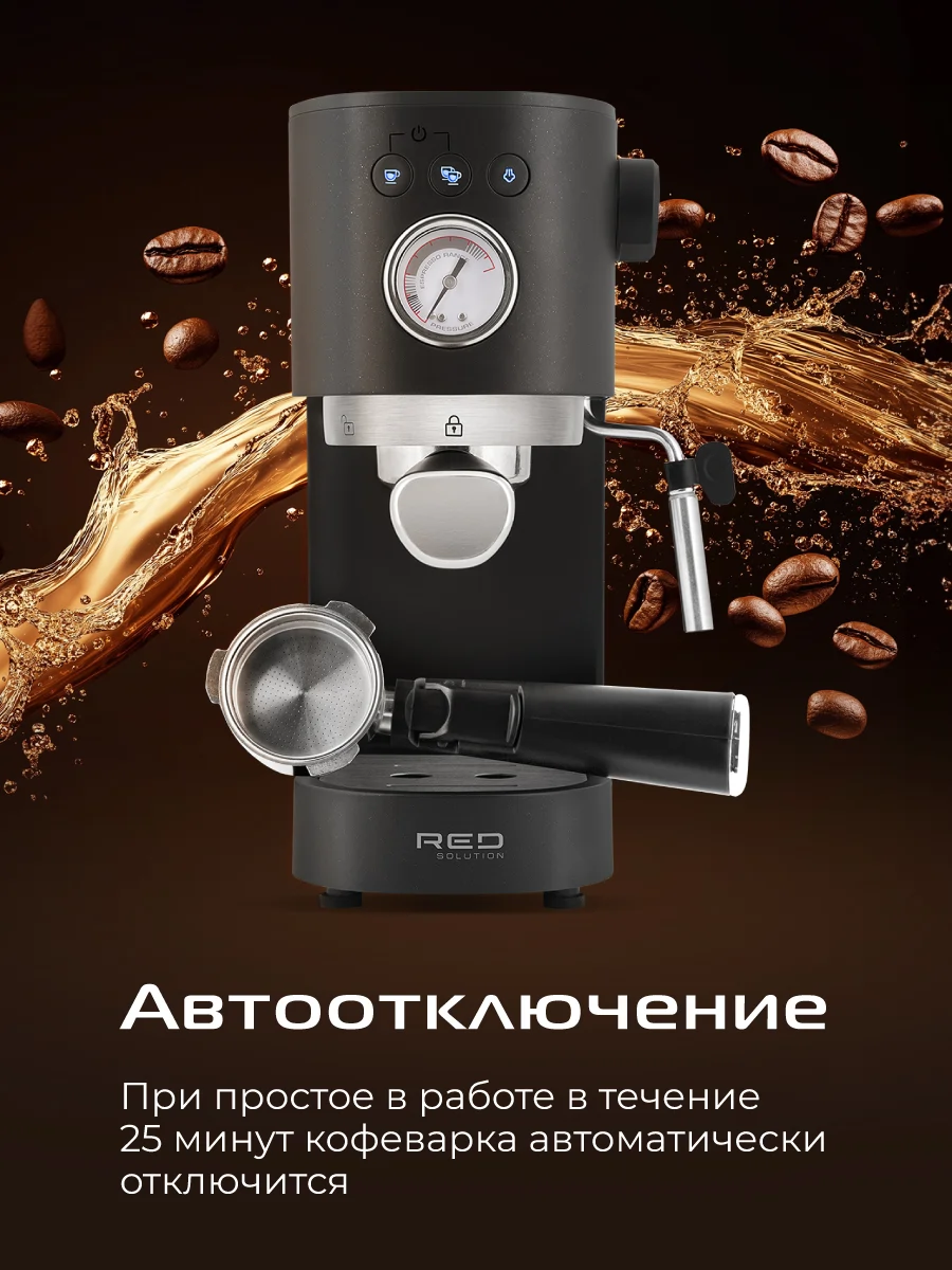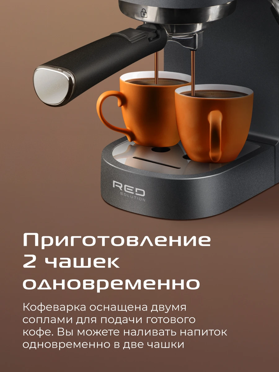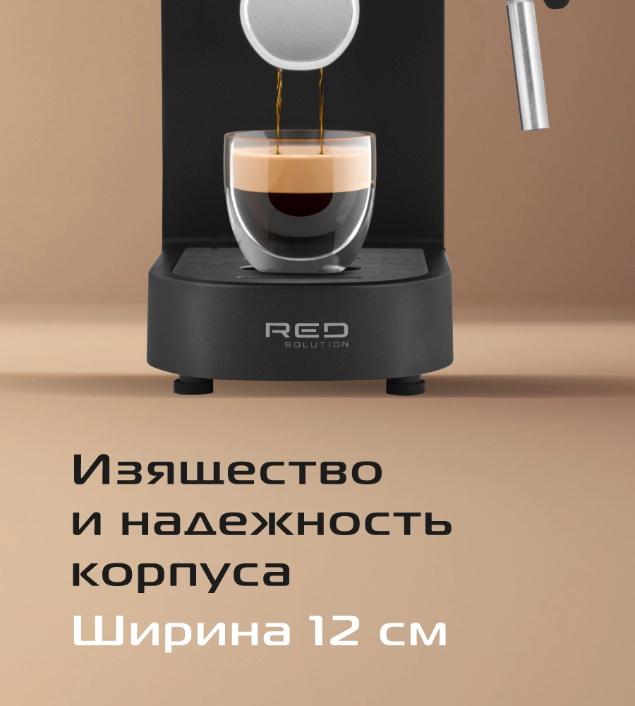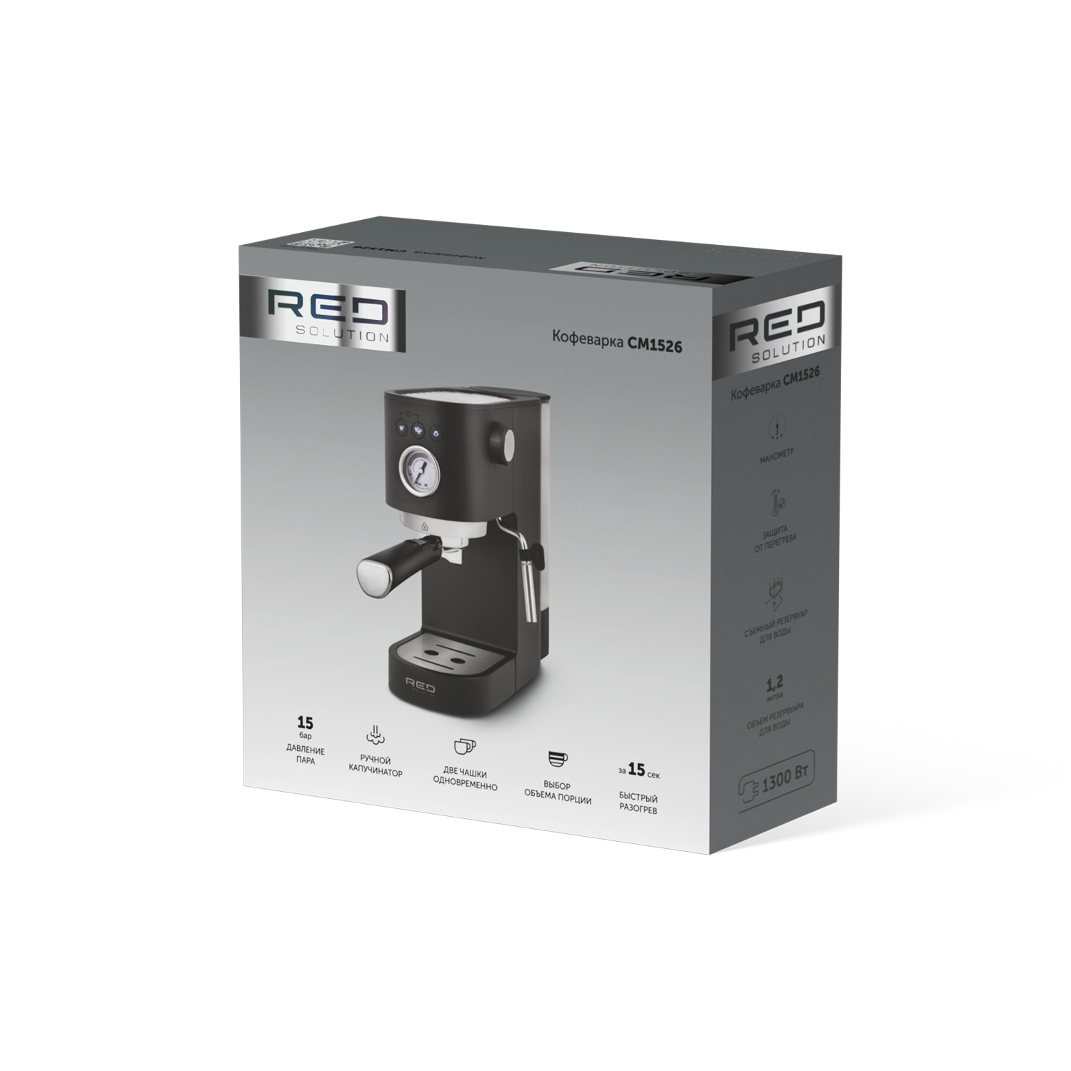 Компактная рожковая кофеварка RED SOLUTION CM1526 с ручным капучинатором быстро сварит вкусный кофе отличного качества благодаря высокому давлению в 15 бар. Давление также отвечает за густоту и плотность молочной пены – ваш капучино будет безупречным. Простое интуитивно понятное управление позволят приготовить одновременно одну или две чашки кофе, а также выбрать размер порции напитка – кофеварка запомнит предпочитаемые параметры и приготовит кофе так, как вы любите.