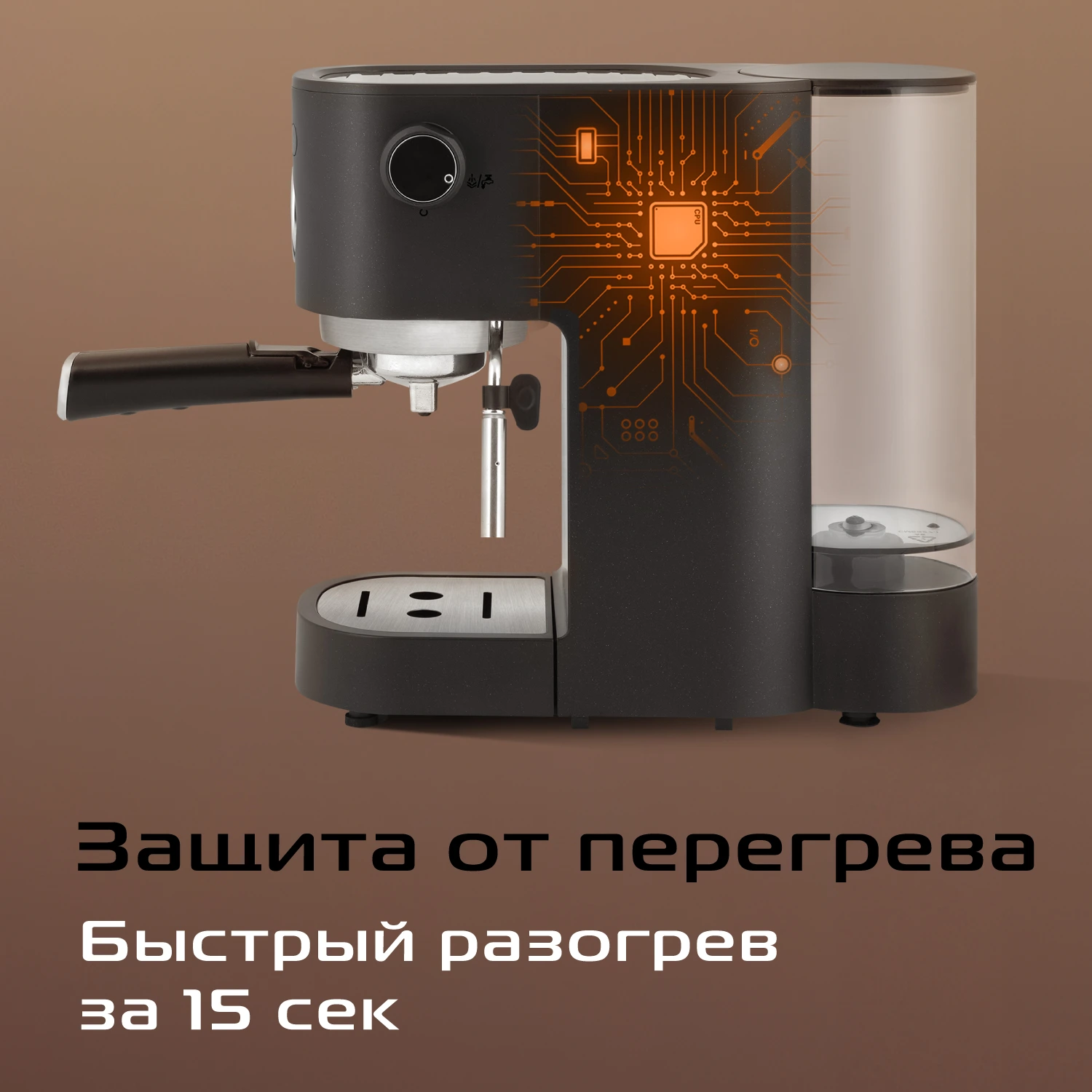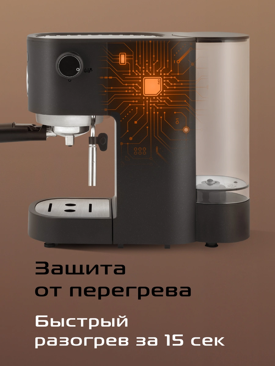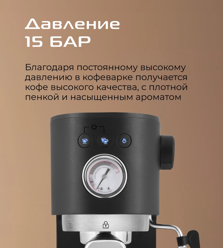 Благодаря высокому давлению кофеварка готовит отличный кофе с плотной пенкой и насыщенным ароматом. Манометр позволит вам наглядно наблюдать за работой помпы, отвечающей за давление.