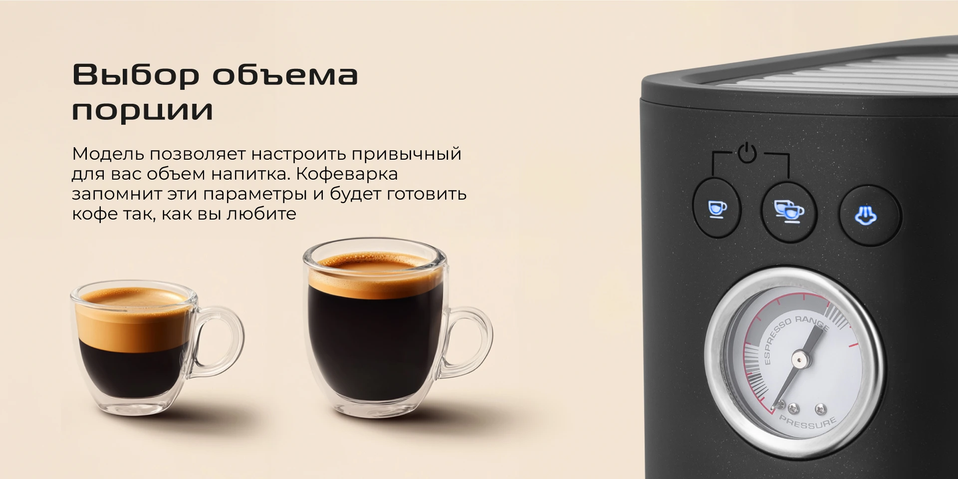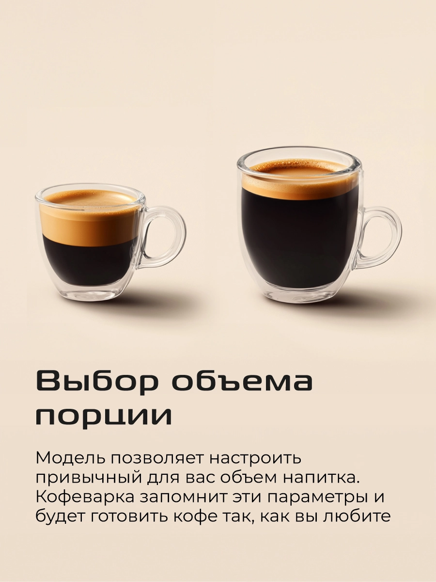 Настройте желаемый объем напитка, а кофеварка запомнит его до тех пор, пока вы не поменяете настройки.
