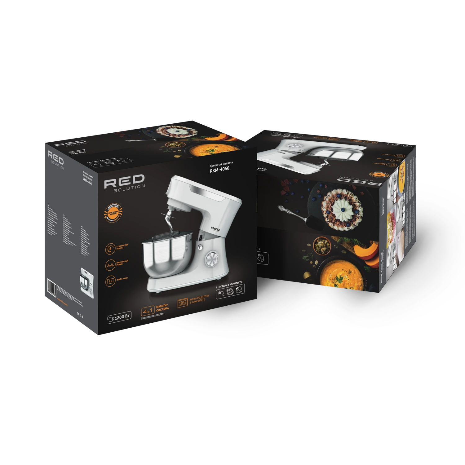 Кухонная машина RED SOLUTION RKM-4050 — ваш универсальный кухонный помощник. Благодаря комплекту сменных насадок устройство значительно облегчит выполнение самых сложных кулинарных операций: замешает густое дрожжевое тесто, взобьет воздушный крем и приготовит однородный соус. При помощи дополнительных аксессуаров машина также может превращаться в блендер, мясорубку и овощерезку. Профессиональный уровень готовки в домашних условиях.