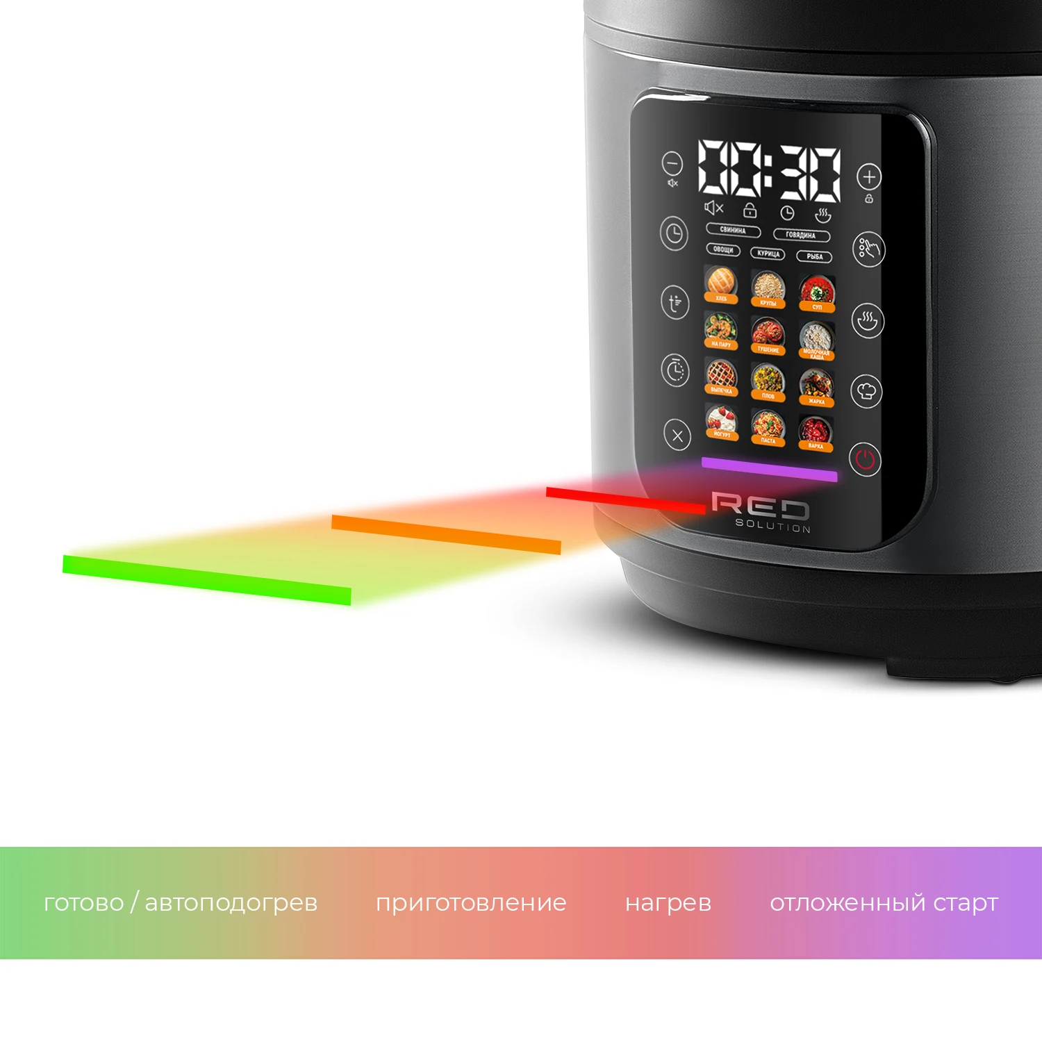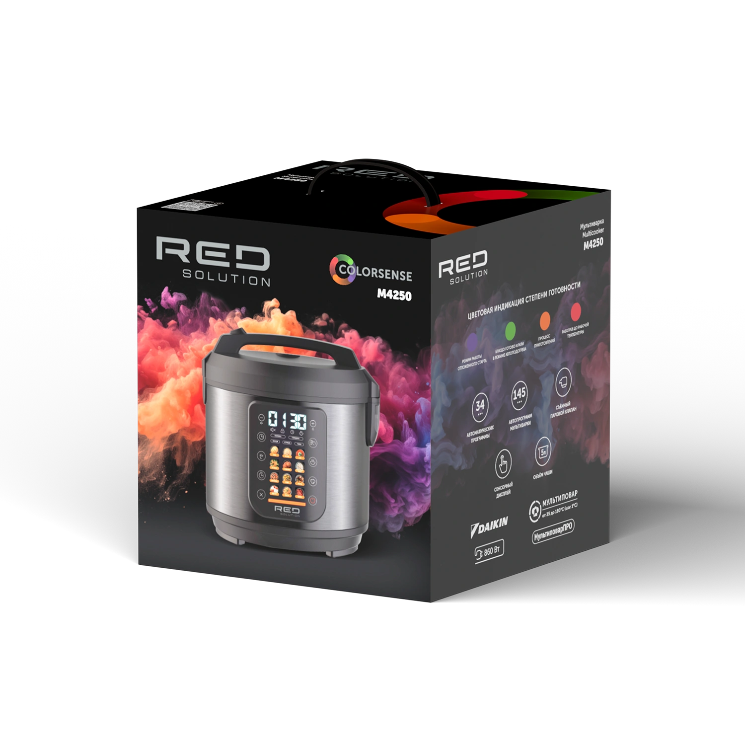Мультиварка RED SOLUTION COLORSENSE M4250 – универсальный помощник на вашей кухне. 34 автоматические программы и опции ручной настройки делают кулинарные горизонты практически безграничными. В мультиварке легко варить, жарить, тушить, готовить йогурты и чизкейки, готовить су-вид и на пару. Наглядная полноцветная сенсорная панель и цветовая индикация режимов работы COLORSENSE выводят взаимодействие с устройством на совершенно новый уровень. Вместительная чаша с японским антипригарным покрытием Daikin ™ объемом 5 л позволит готовить с неизменным качеством на всю семью – быстро, удобно, а главное безопасно.