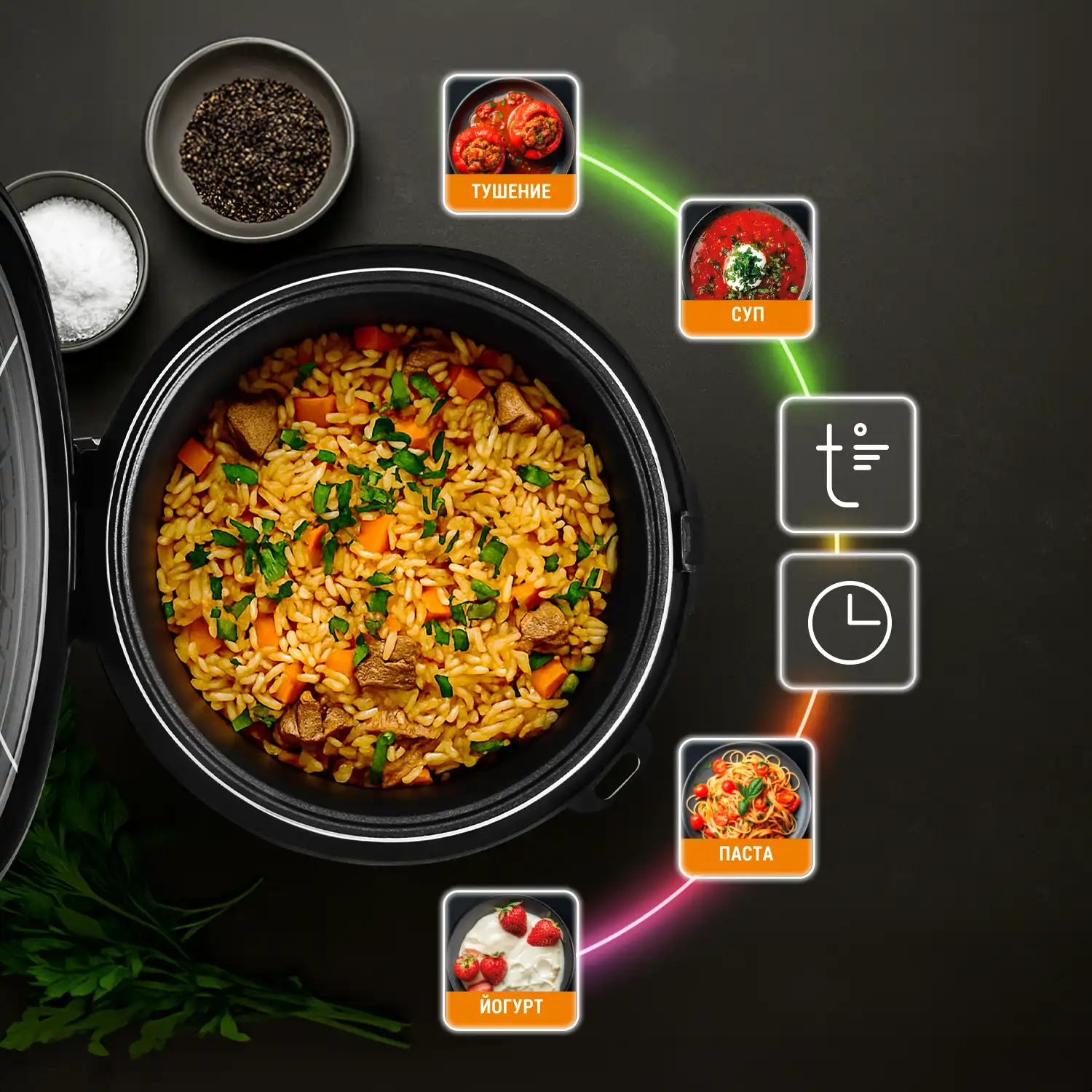 Для самых популярных рецептов предусмотрены автоматические программы приготовления. Поместите ингредиенты в чашу, выберите нужный режим, и мультиварка выполнит всю работу за вас. Каши и крупы, мясные и рыбные блюда, супы, выпечка и хлеб будут приготовлены идеально.